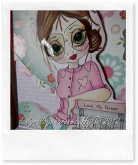 Digi stamp artwork is by Krista smith click on her name to view her blog, I have coloured her in pro-markers and highlighted buttons, glasses and pearls on her glasses strap with crystal gloss papers are DCWV spring stack, with ribbon from dovercraft